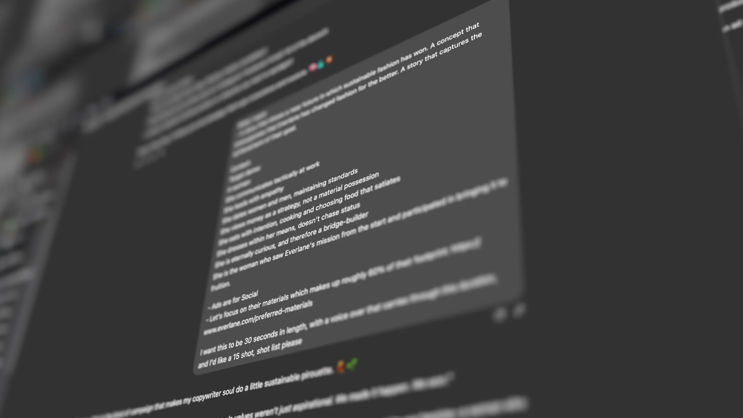 After researching Everlane’s Target Audience, I submitted a prompt describing a persona, inspiration images of Simon Stahlenhag’s work, and Everlane’s URL, to a custom marketing GPT.